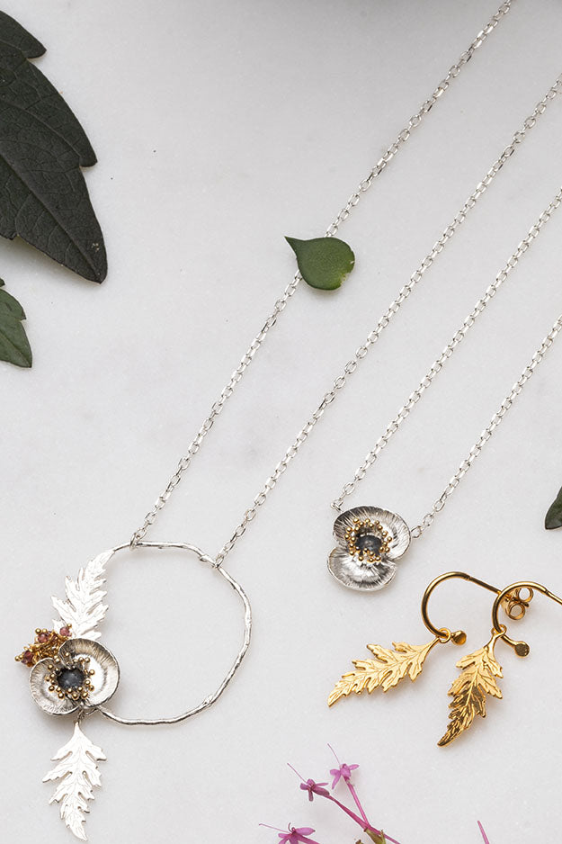 All our jewellery is handmade in the UK, in solid silver and gold plated details.